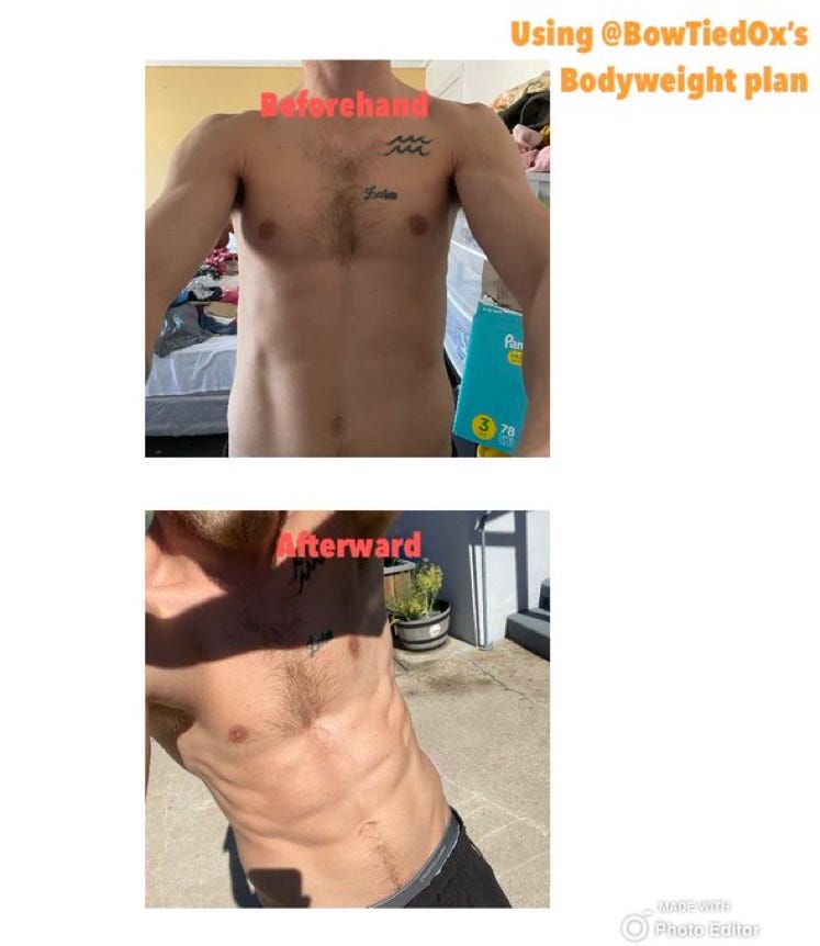 I have written a full post on a bodyweight program on the paid substack, but I will give you a sample routine you can follow here: